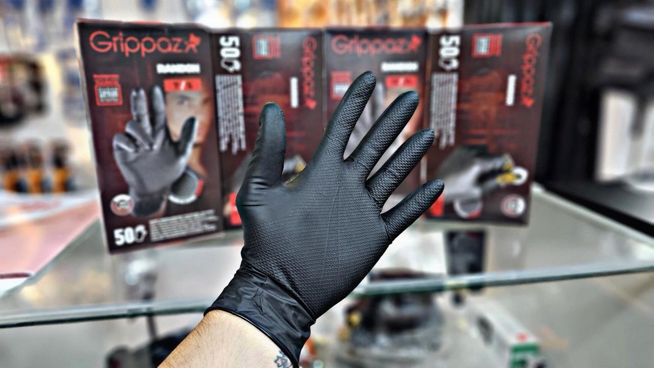 - La mezcla de nitrilo patentada de 6 milésimas de pulgada con patrón de escamas de pescado patentado es más resistente al desgarro y a las perforaciones que los guantes desechables convencionales de un solo uso, para un uso prolongado y un menor desperdicio
