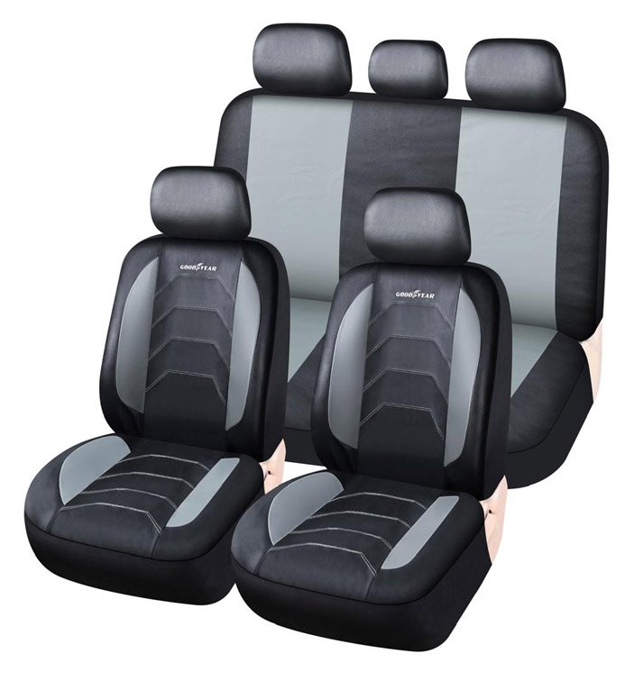 FUNDA ASIENTO GOOD YEAR CUERINA NEGRO C/GRIS Y COSTURAS