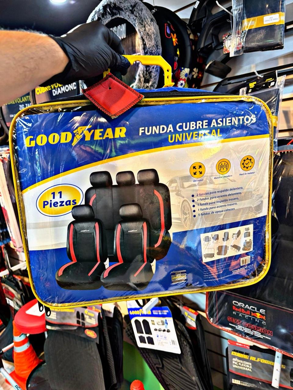 FUNDA ASIENTO GOOD YEAR CUERINA NEGRO C/ROJO cantidad